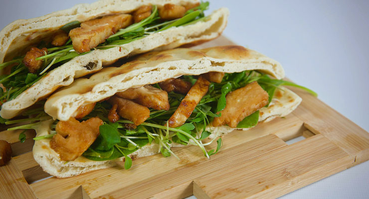 Microgreen stuffed naan is a tasty and nutritious meal that combines the sweetness of pea shoots and the crunch of sunflower sprouts with tangy bbq chicken and garlic mayo.